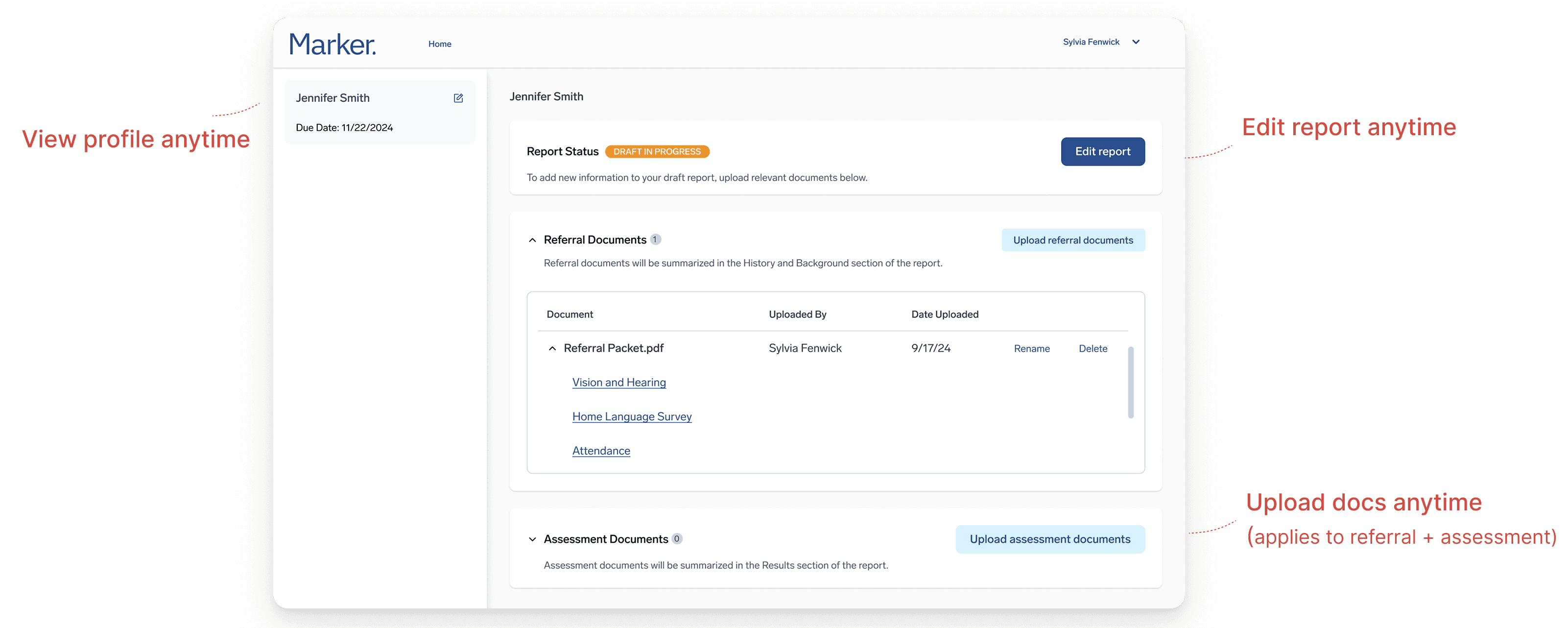 Marker helps school psychologists and special education teams manage evaluations and write high-quality psychoeducational reports — without sacrificing accuracy or professional judgment.