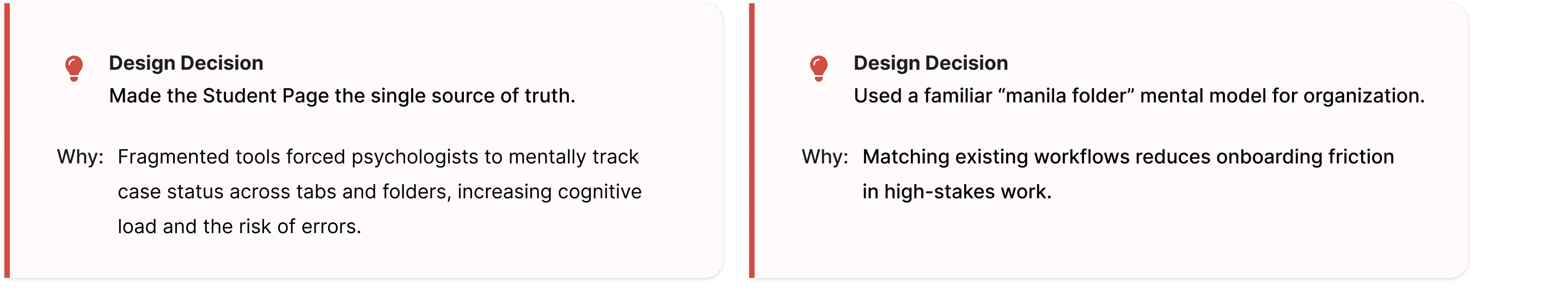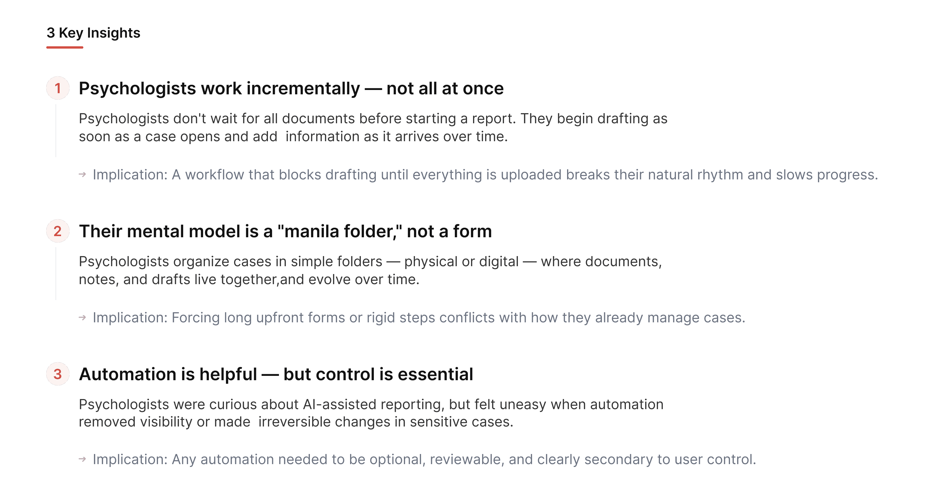 Rather than forcing psychologists into a single “right” starting point, we learned the system needed to adapt to different stages of a case — supporting both early momentum and ongoing control.