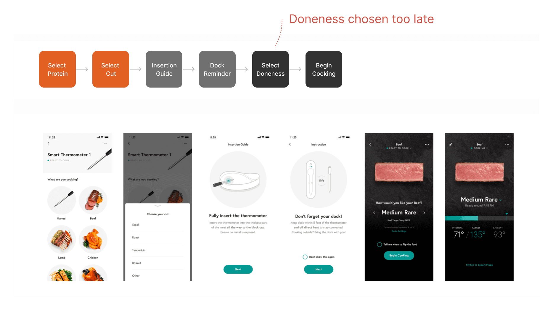 Home cooks using both the thermometer and smart oven expected one seamless experience, but the app’s flow wasn’t designed for multi-device cooking.